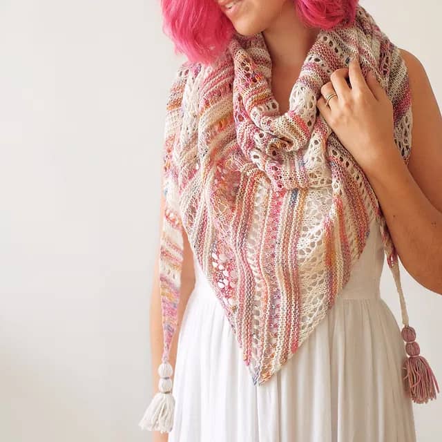Why we love it: This asymmetric shawl alternates between garter stitch and lace openwork, making it easy to memorize and fun to knit!